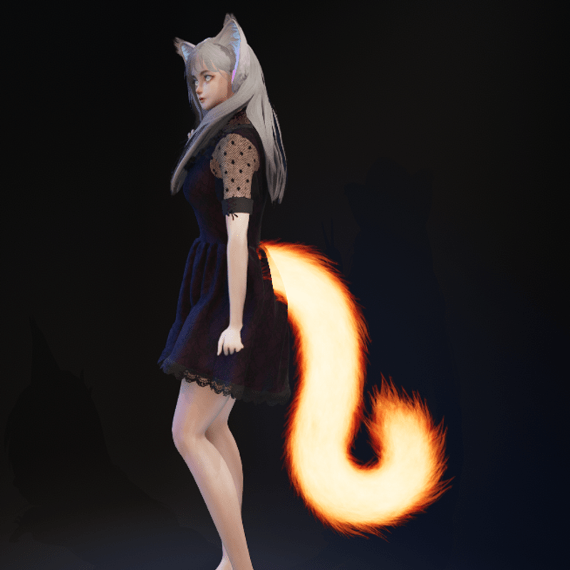 Big luxurious Flooofy Cat tail. Animated Fire Edition! See example Gif for what the animation looks like in game: https://gyazo.com/fc68b481e16651a1013e917bf6a98d6c The necklace slot version so it can be rotated and scaled and is Fully Transformable. (If you need to wear a necklace with the tail, a clothing slot version is also available on store and is not adjustable but does have better rigging) Make sure to set your inventory to 'Show all accessories' if the Tail does not show up immediately for you in the accessories tab. (See the example picture on this listing for reference.) Will fit both Female and Male framed avatars. The rigging works well enough on the necklace slot version but does have minor movement inconsistencies with the rest of the body unfortunately (waiting for a tail slot attachment point) Contact "TheNick-1981" through Sansar or Sansar discord if you need re-rigging or there is a problem etc.