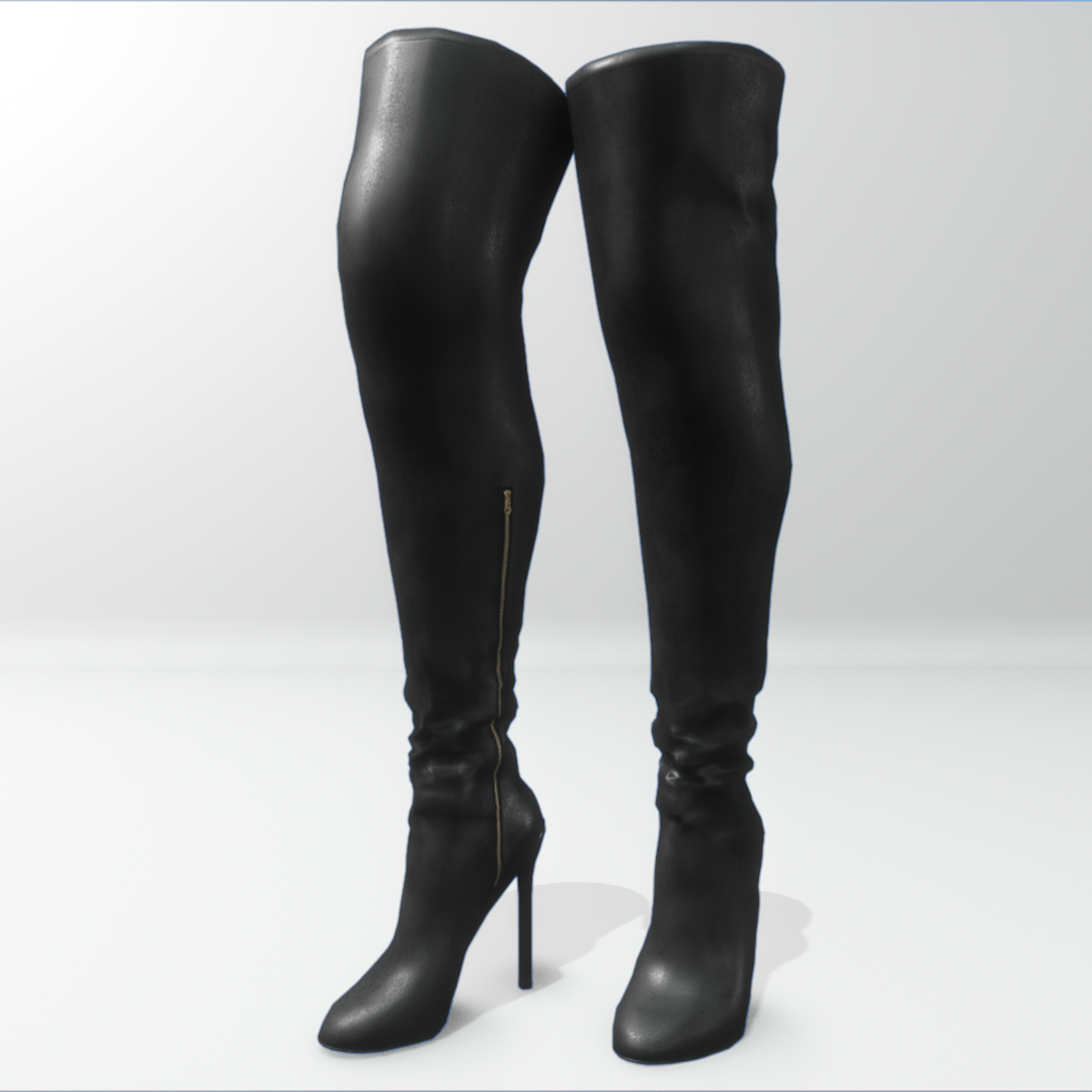 Above the knee leather boots with high heels for the avatars "Alina - Daisy" and Nicci. With metal zipper at the inner part of the calf and in black color. Get the free demo to check style and fitness before purchasing here: https://store.sansar.com/listings/42d1e5db-5b60-4e2f-a351-8d71502dc3c7/alina---daisy-and-nicci-avatar-boots---demo
