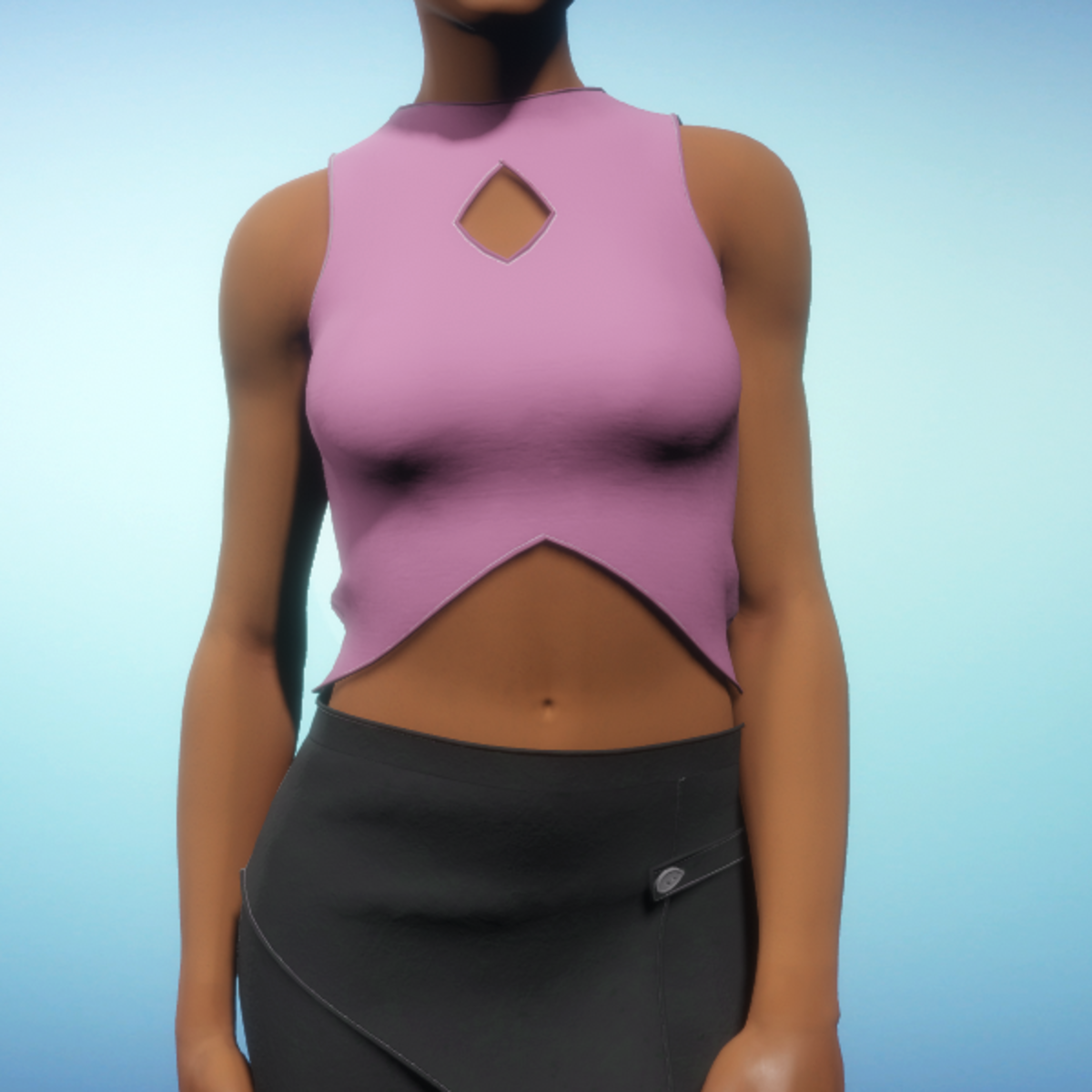 Cropped modern tank top that features a diamond cutout on the chest. By Sweet Distractions