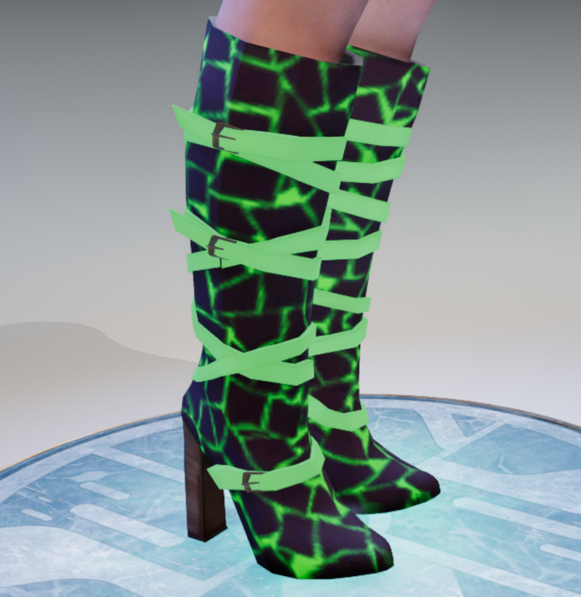 Emissive Stringed Boots IMPORTANT: skeleton and bones weight are set on FireGoatGaming's HeelStarterPropAndKit