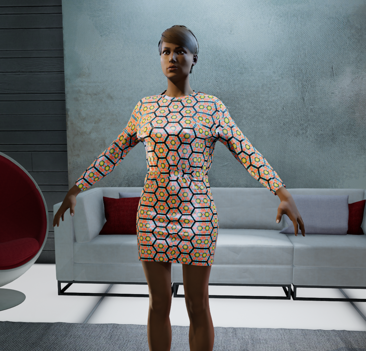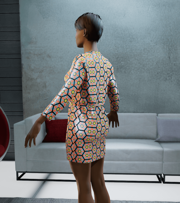 Patterned Jersey T-shirt dress, print designed by S.J.G Designs - a designer with Down Syndrome who specialises in print.