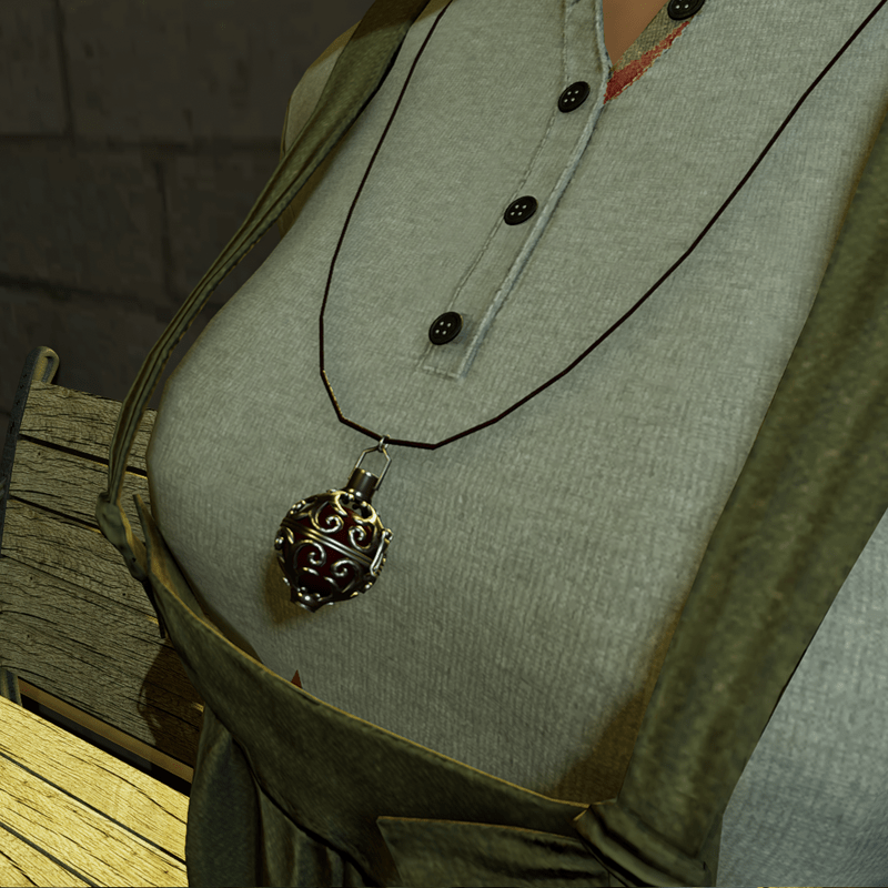 The Engelrufer (angel caller) can call an Angel for you, with brown 20mm Ball and brown Leather Lace. In 925-Sterling Silver. https://atlas.sansar.com/experiences/seantaurog/madcap-shoe-shop