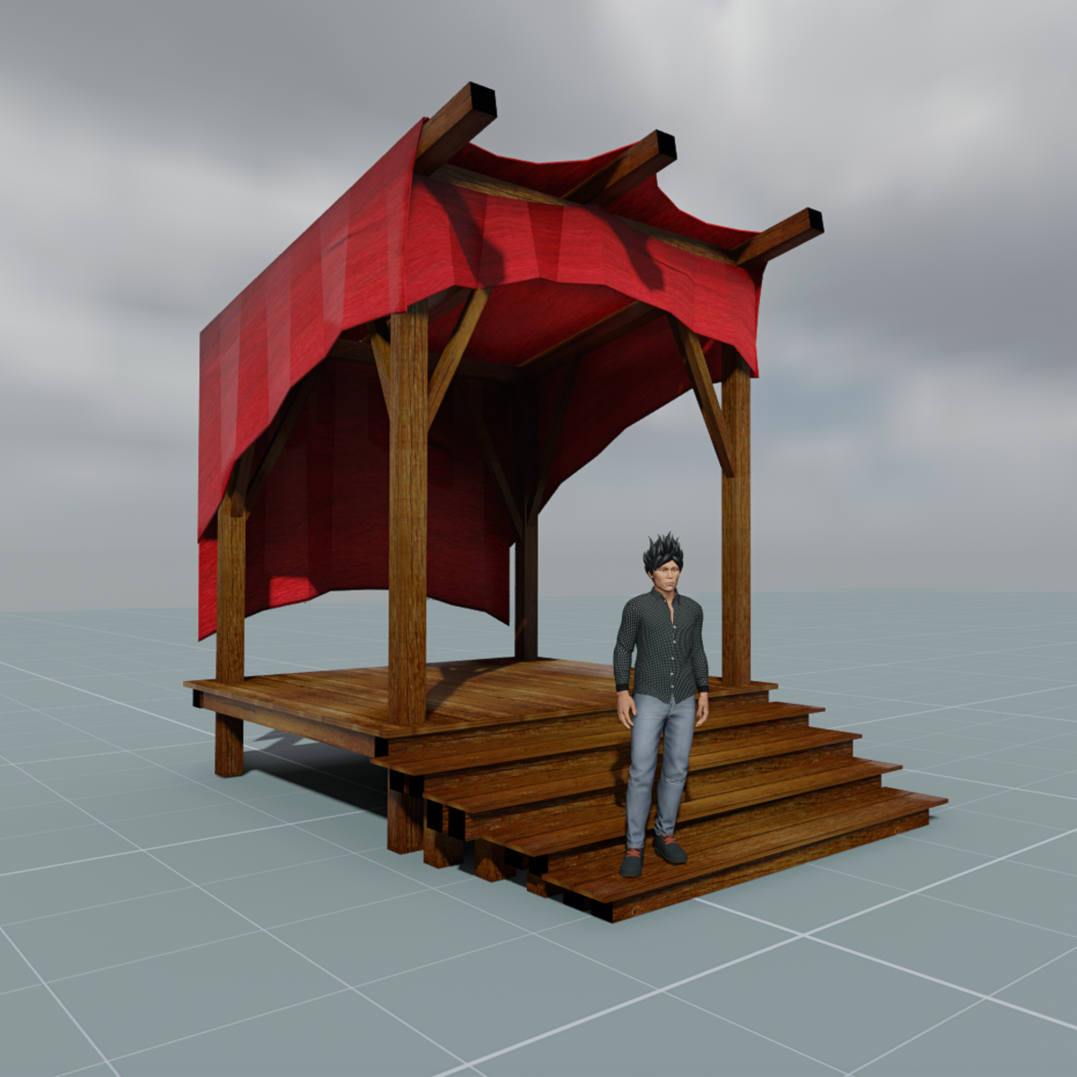 A simple shop or stage front that can be used as a store or storage area. FBX with collision. Made exclusively for Sansar.
