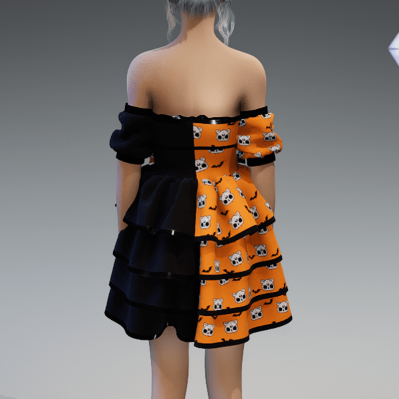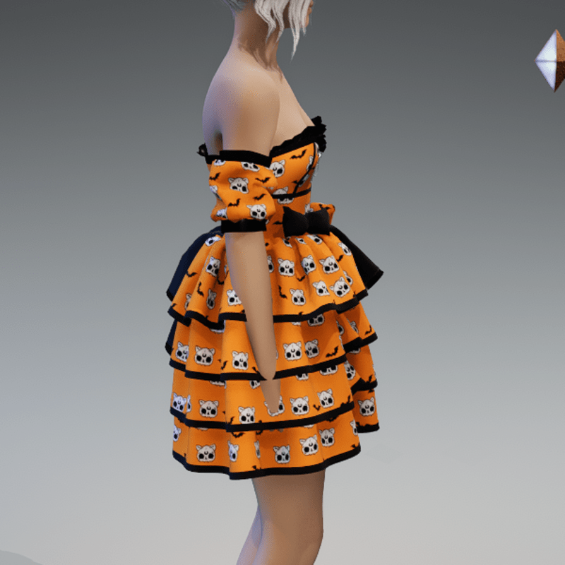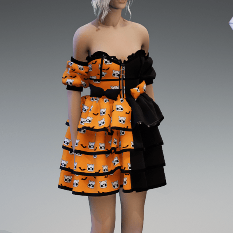Lolita Dress V1 'Deadcats & Bats' with Bows in Orange