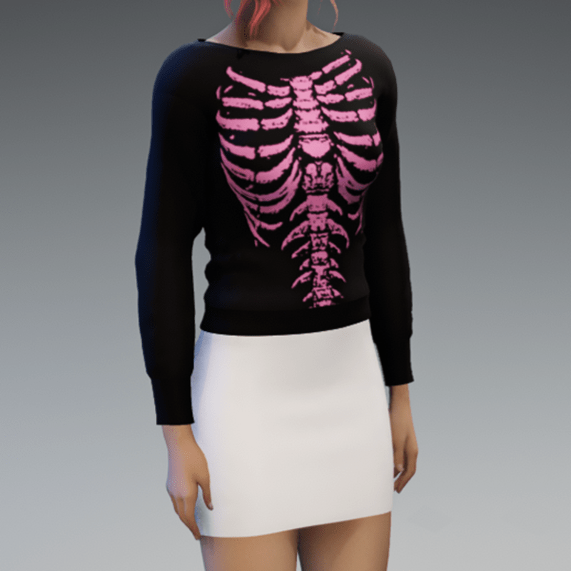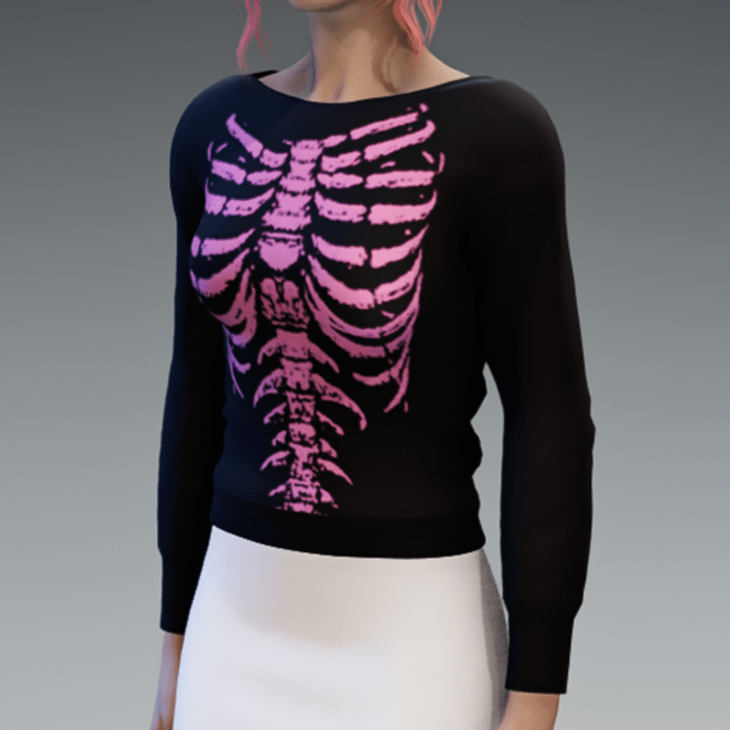 Here comes my basic Pullover in black with the skeleton print in pink! If you like the skirt showing in the images - look for my "White Mini Skirt". Enjoy!