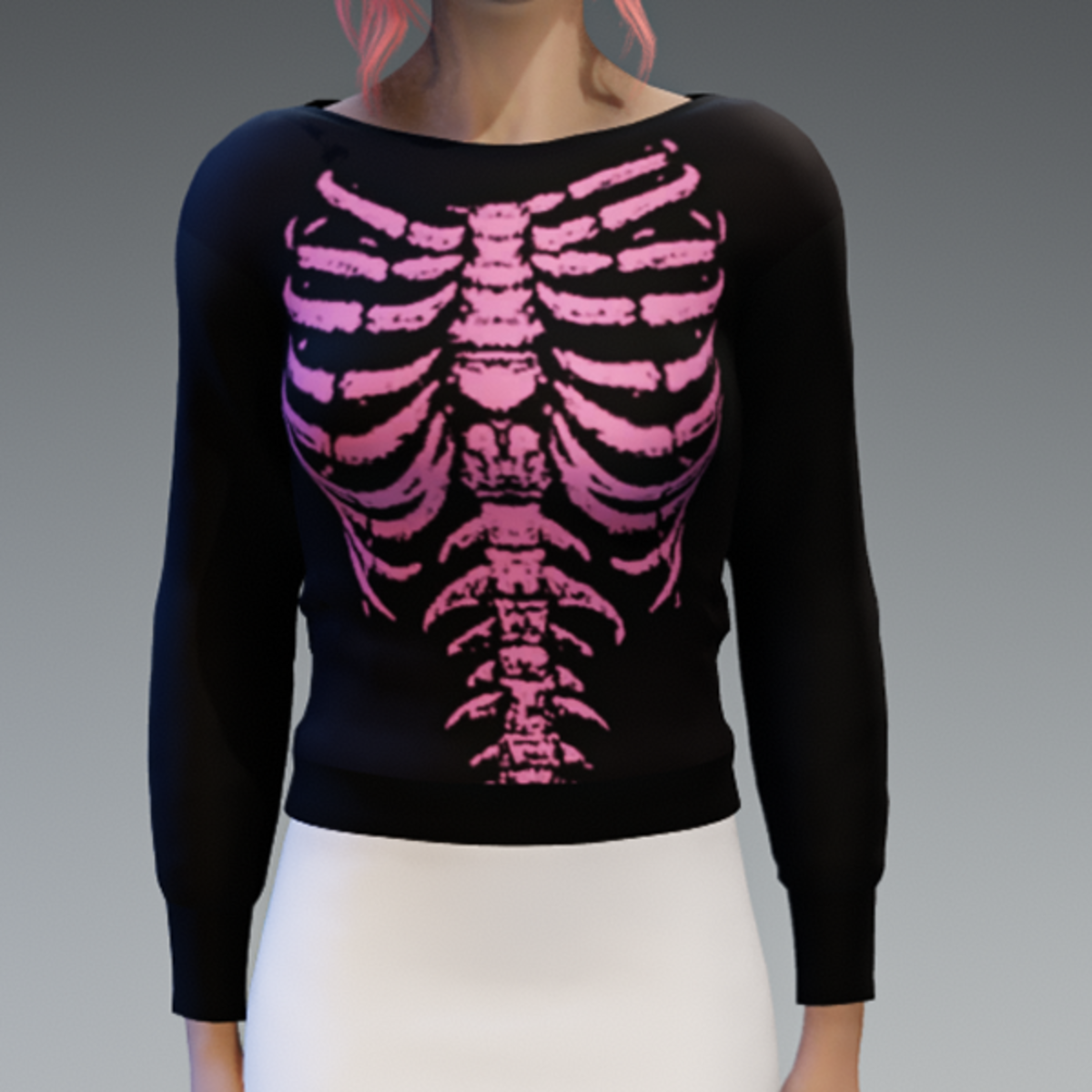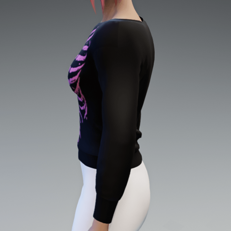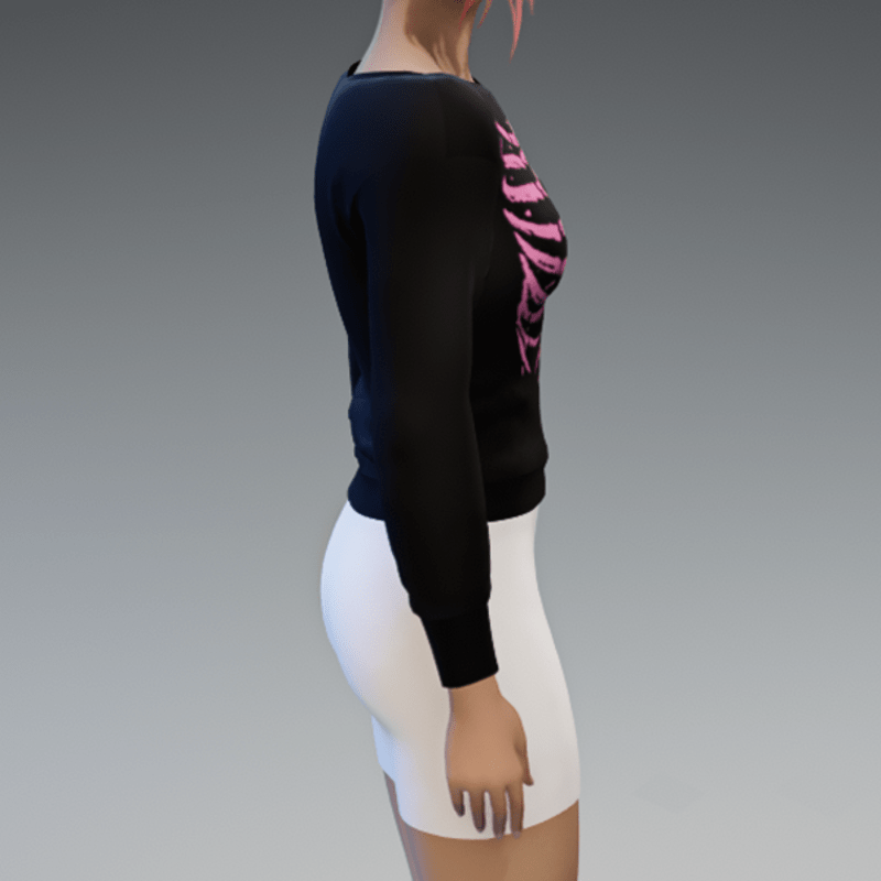 Black Pullover with Pink Skeleton Print