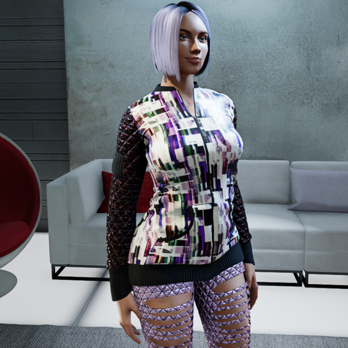 High quality sweater with shiny sleeves and working zipper. Please don´t forget the ratings ;) Feel free to simulate the clothes before wearing it to adjust it optimally.
