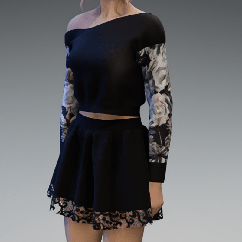 My cozy oneshoulderfree pullover as a shorter one with a cute "roses"-pattern on the sleaves. Note before buying: If you want to know how this pullover would look like on your avatar - get the free 'siggys store'-basic version of it in my store first. And if you like the skirt - you can find it in my store, too! Enjoy!