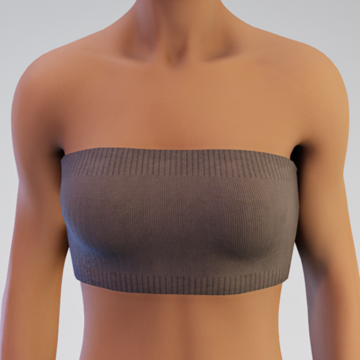 Simple knit tube top with 2 x 2 ribbing. Easy adjustment; just hit the button and you are done. Avatar 2.0. Works well under jackets and open tops. Try the DEMO.