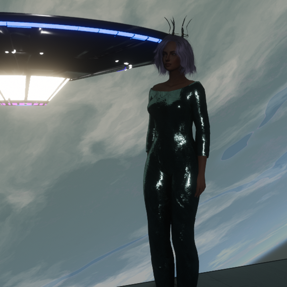 Sci-fi inspired foil jumpsuit in light blue. Made in Marvelous Designer so you can adjust to your fit as needed. Tested on Alina avatar by Cora.