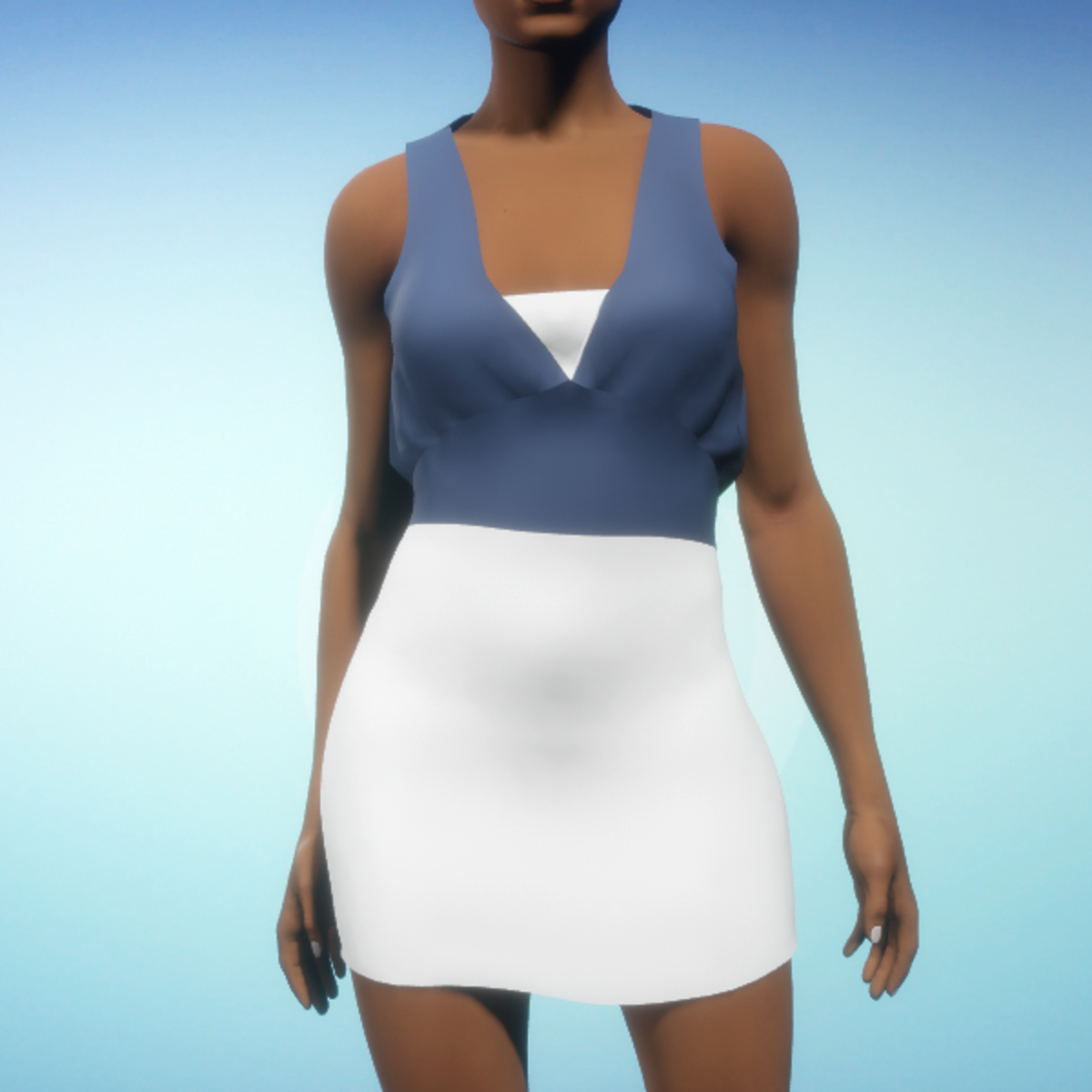 - Bloused Mini Dress - Blue and White