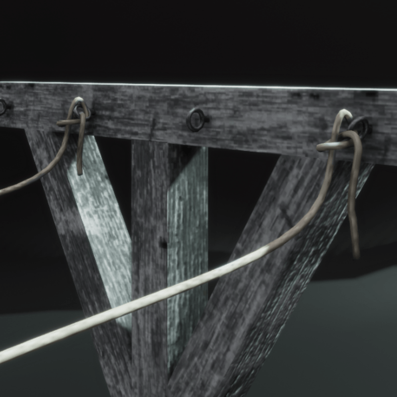 Rustic weathered clothesline with blankets hanging on the line. See inworld here: https://atlas.sansar.com/experiences/chicaeon/ranch-life Part of the Ranch Life set from ChiC buildings. Original mesh with Cycles baked textures. Normal map Custom collision mesh