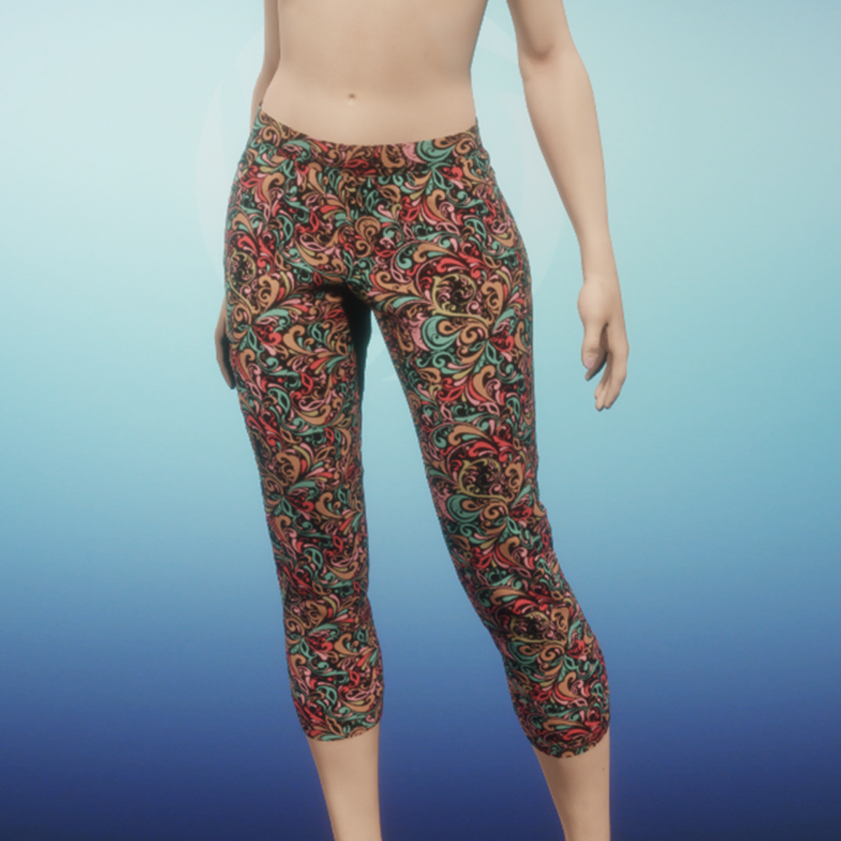 Sexy three-quarter pants with nice pattern. Please simulate the clothes before wearing to adjust it optimally.