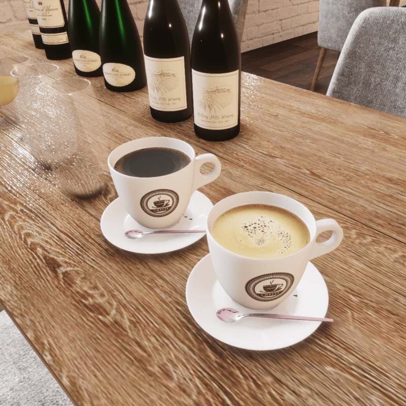 Table and drink, coffe, wine, glass with chair