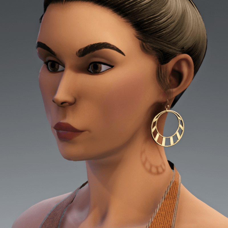 Crescent Hoop Earrings with S hook. Fits AV2 reference head. If you have changed the shape or size of your head you will likely need to use the TRANSFORM tool to adjust the earrings. Personally? I just adjusted my head to fit the default reference model -- so much easier :D.