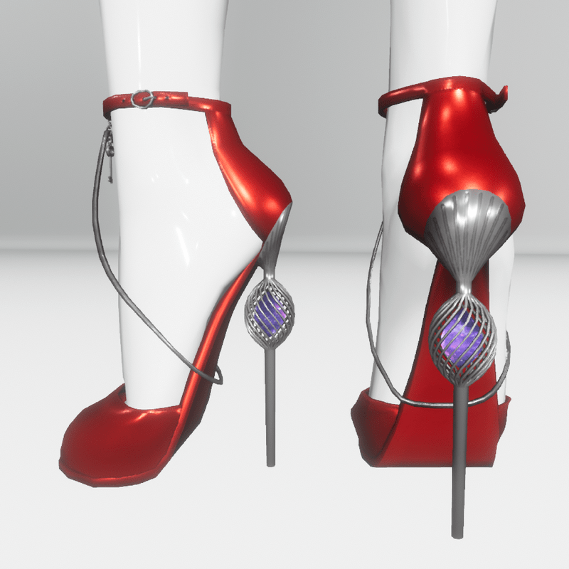 Stiletto sandals for the system H2AI high made of red leather and silver metal. The heel is shaped like a cage enclosing a small galaxy, which rotates. The shoes are tied at the ankle with a strap and a buckle. At the front hangs a small key and a metal chain that surrounds the foot. Before purchasing get the free demo item here:https://store.sansar.com/listings/05265f6c-02cd-4746-bf09-c319d5ab9c05/galaxy-cage-heels-for-the-h2ai-high--demo