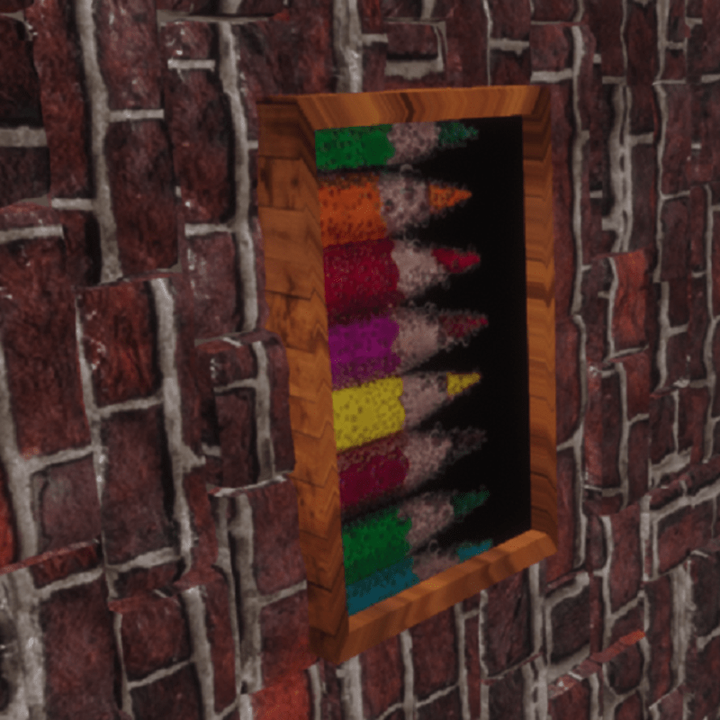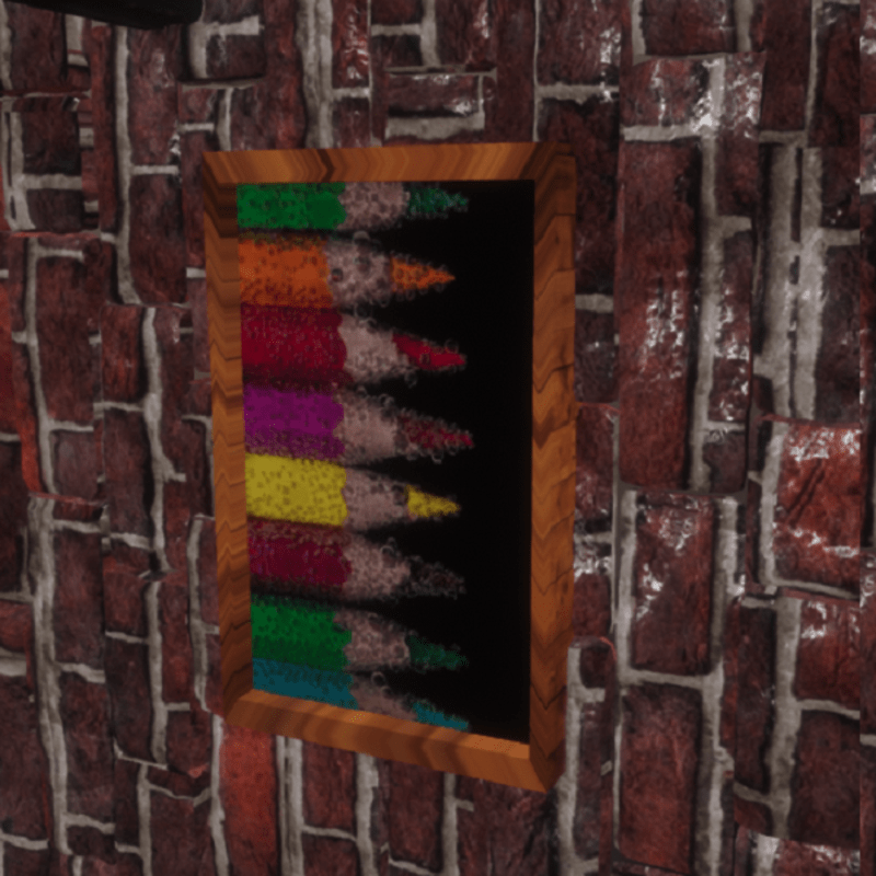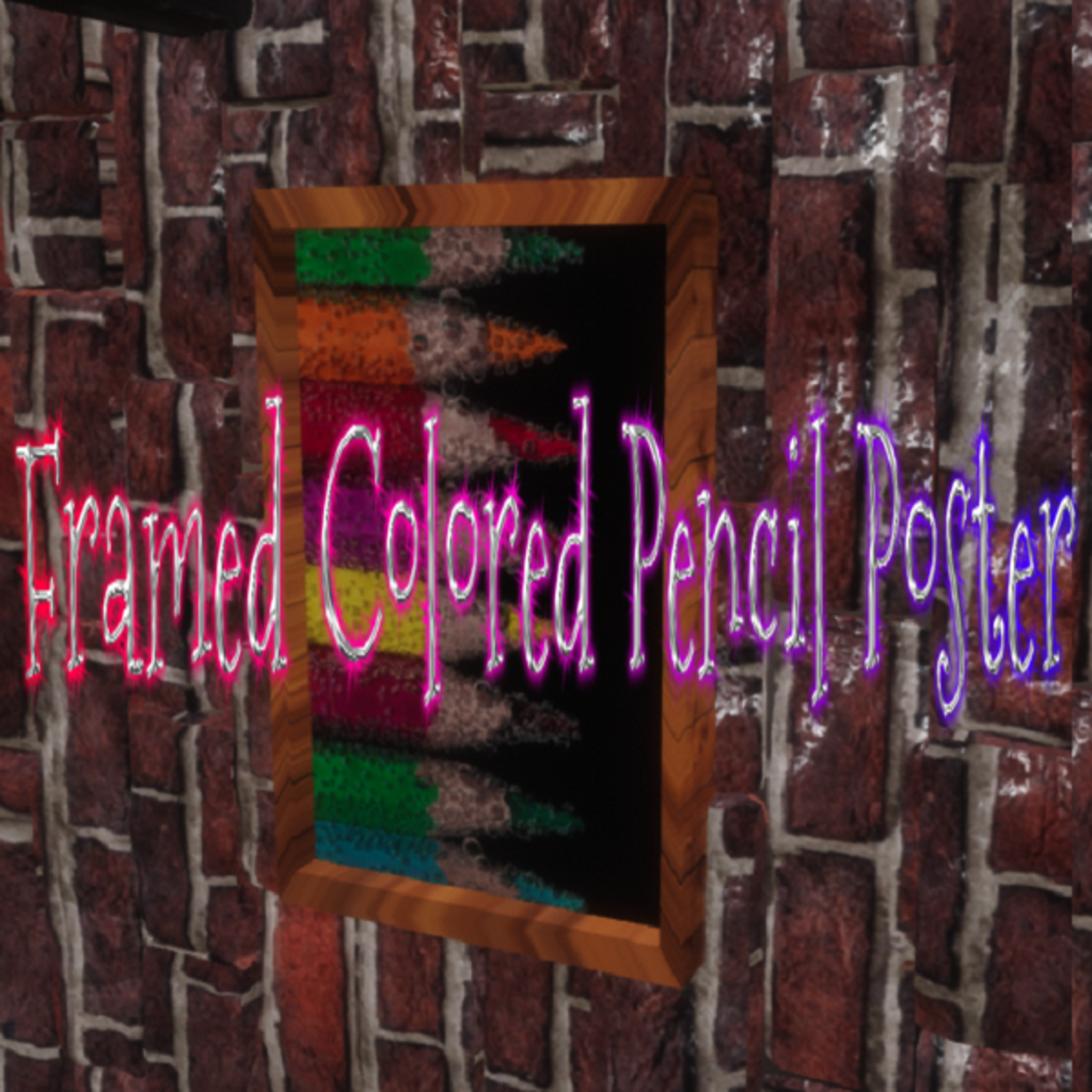 This is a framed poster of colored pencils in water, with a black background. The frame is wooden.