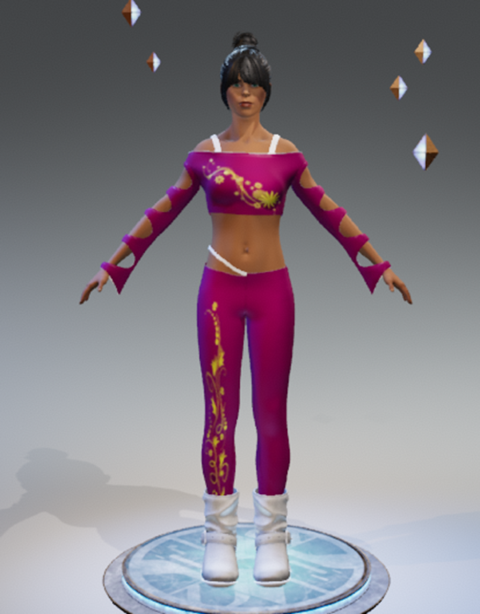The outfit is very, very tight, could be tricky to fit it on custom avatar, so please download the free version before buy it.