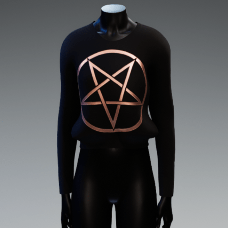 Metallic Pentagram Sweatshirt. Created in Marvelous Designer with Avatar 2.0. Adjustment may be required!! PLEASE DON'T FORGET TO RATE AFTER YOU BUY! THANK YOU :)! https://help.sansar.com/hc/en-us/articles/115005693363-Fitting-Marvelous-Designer-clothing-to-your-avatar