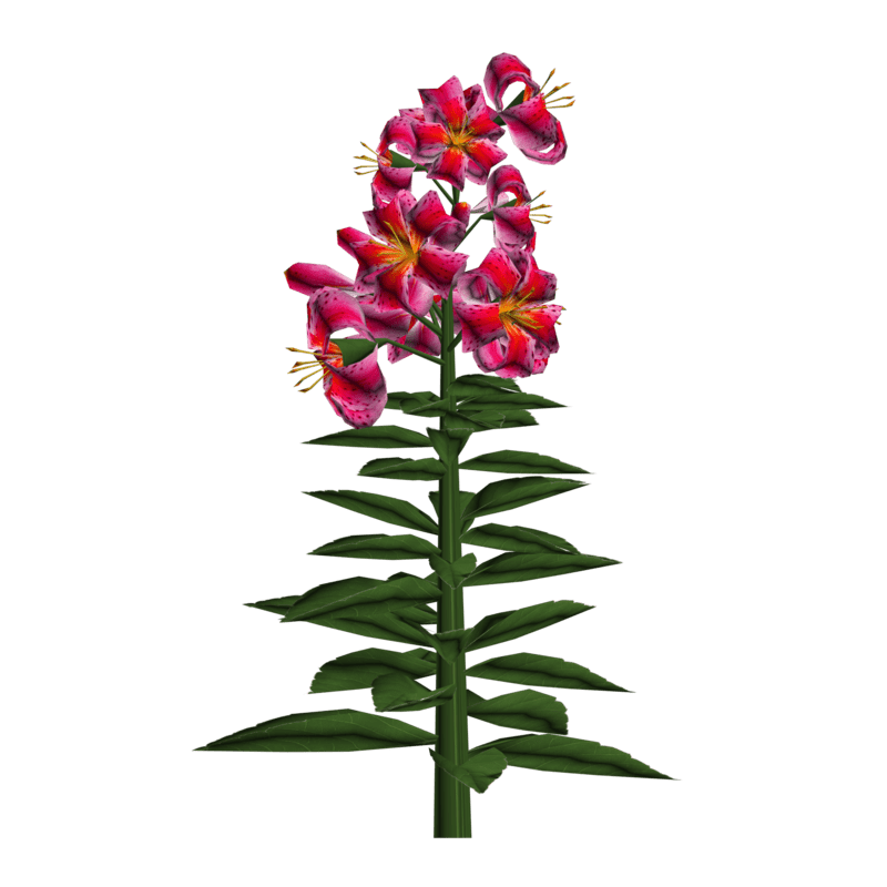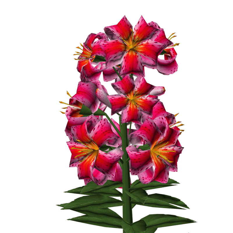 1 Tiger Lily Plant with about 10 blooming lily flowers and 6 buds and several leaves for your lovely gardens. Polygon count: 6546. There is no collision on this mesh so you can walk through it. I have many colors. To see this flower in Atlas, please visit "LovedWarrior's Ground Plants: https://atlas.sansar.com/experiences/lovedwarrior/lovedwarrior-s-ground-plants" Please note that all my flowers are 100% detailed mesh meaning no flat planes with flower pictures pasted on them. Each petal, pollen, stalk and leaf is made by hand and placed by hand. I only make grass from planes with grass pics pasted on them. All the textures are also made by me. If you have any flower or plant requests, show me a picture of the flower and I will let you know if I can make it for you. Enjoy!