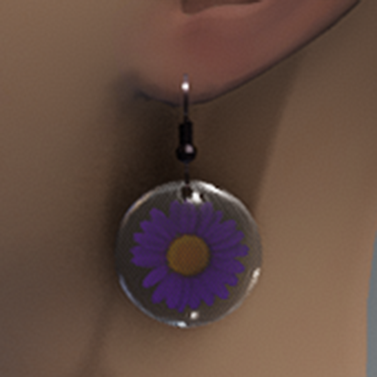 Violet resin daisy earrings