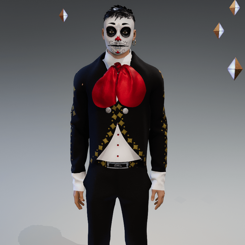 This garment is created in Marvelous designer so you can adjust it to look as you like fits ALL avatars in the store only a little manipulation if needed For any problem, or suggestion contact me. @ jamal-7001 Thank you LINK FOR THE MASK https://store.sansar.com/listings/51ff4f54-83e2-4daf-be9e-aa774939c0d1/halloween--male-mask-6--mariachi-