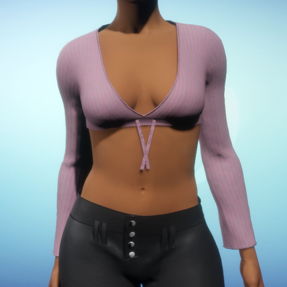 Cropped Long-sleeved V-neck - Pink Knit