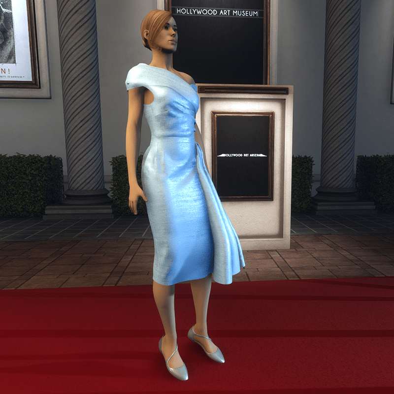 A vintage, Hollywood style dress made with wild silk in pastel blue colour. Check the fitness and style on your avatar by getting the free demo here: https://store.sansar.com/dashboard/listings/2c6b37bd-2302-4c50-aada-5727d9989ae2