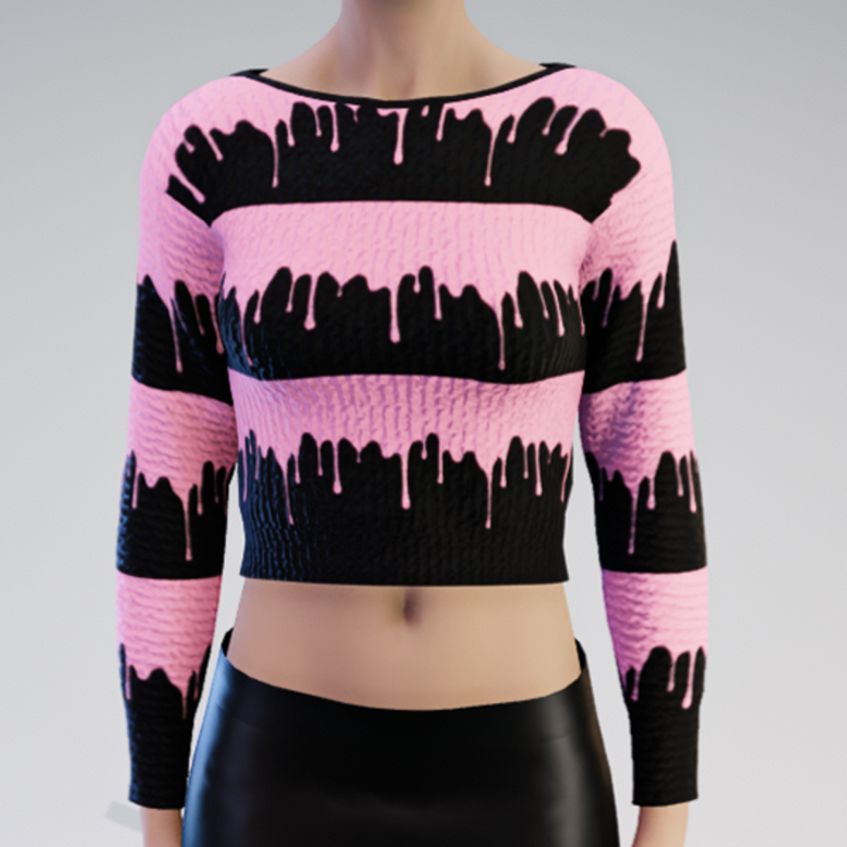 The basic pullover as a knitted one in black and pink with a cute striped drops pattern. Enjoy!
