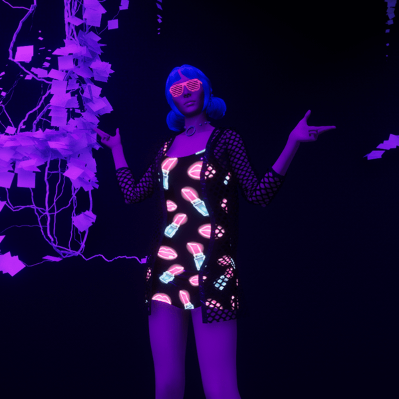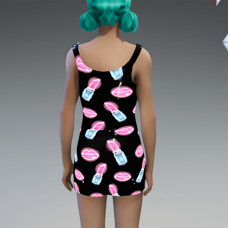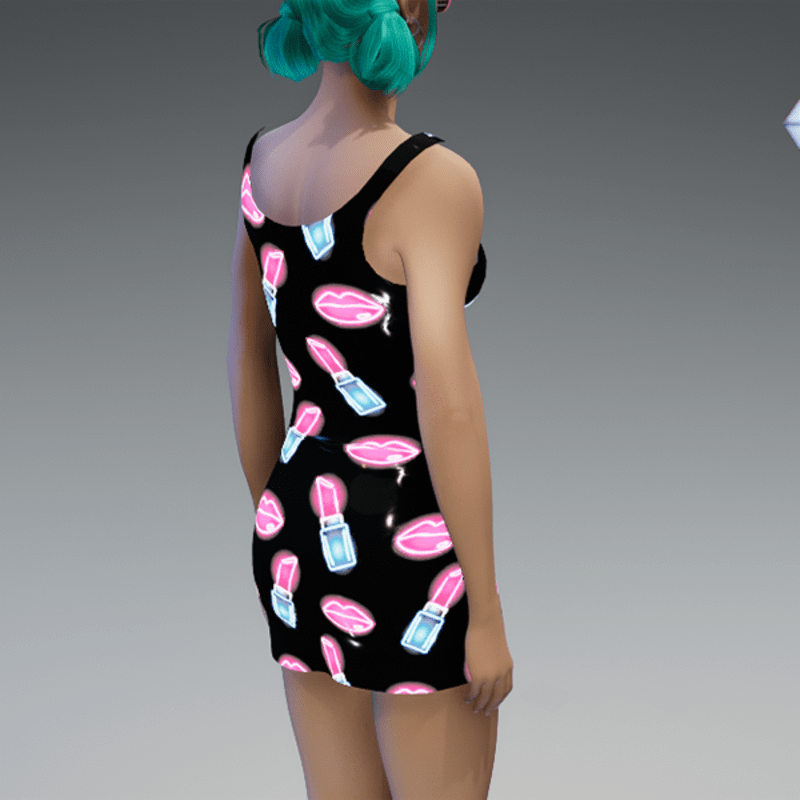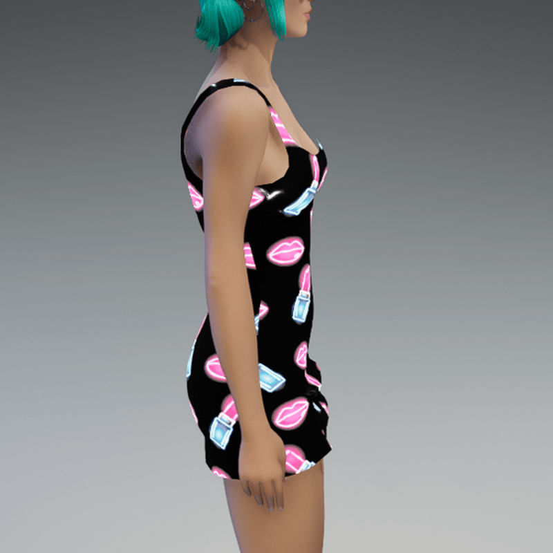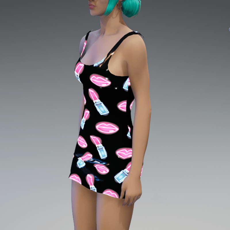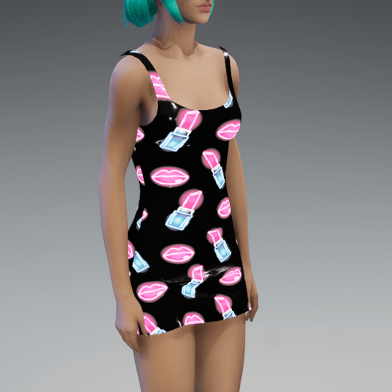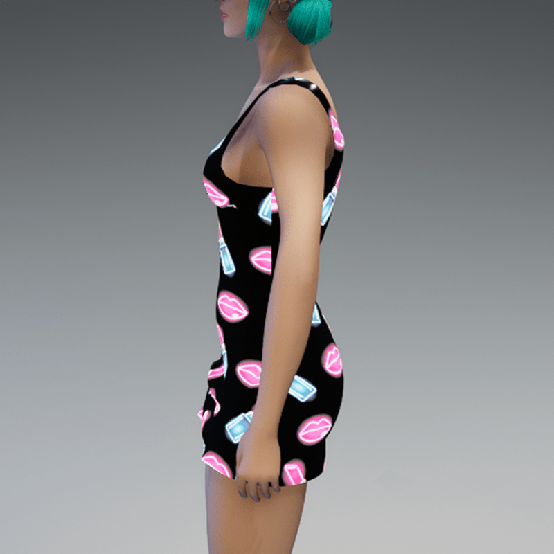 - Glowing "Kiss&Lipstick" Plastic Dress in Pink & Blue