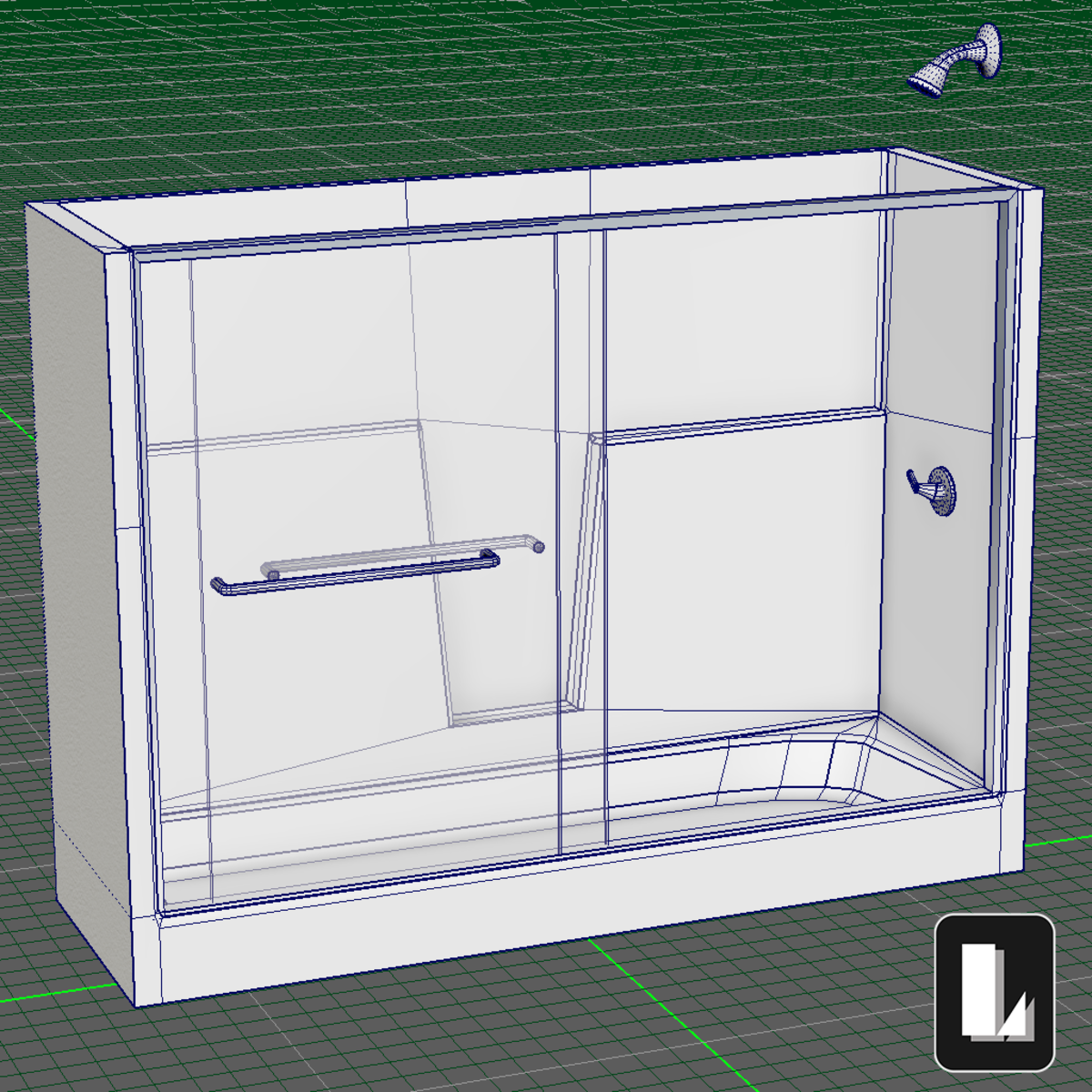 This Collection included Shower, ShowerHead, Shower-Valve, and Wall Enclosure Shower has 678 Polys (has collision mesh, which is optional to use or not, that has 70 polys) ShowerHead has 420 Polys ShowerValve has 306 Polys Wall enclosure (optional to use) has 28 Polys. (Collision mesh has 28 Polys)