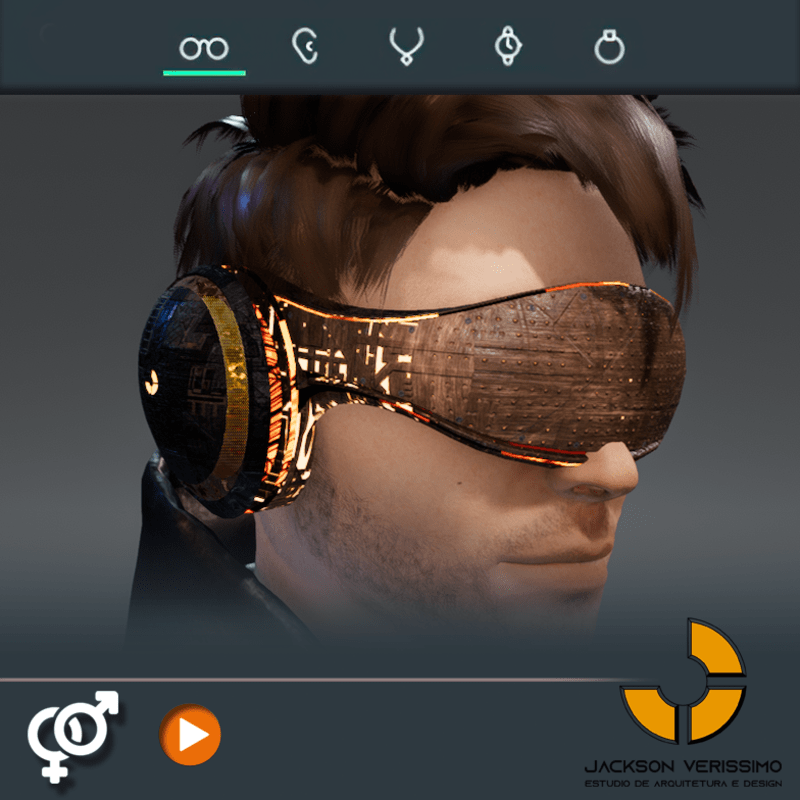 Visionary Design for a VR Headset exclusive for Sansar Metaverse. This Vr Glasses don't mess the Hair of your Avatar. Minimal and Elegant Design. Vr Glasses with HeadPhone. High Resolution PBR Texture and Animated Lights. See the animation: https://gyazo.com/595b12b6022d0b0a0be4bce6fc6c7655 Unisex. Match with all humanoids avatars. No need adjustments for Default 2.0 Avatar of Sansar.