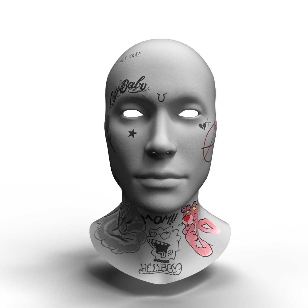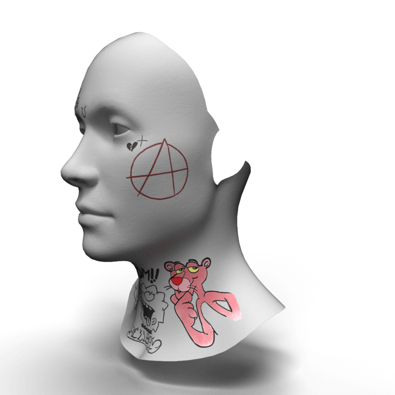 ✟ Lil PeeP Face Tattoo ✟ Choose quality ♘ -Default avatar- -Fully rigged- -Fit any face deformation, set all face slider to 0 for best results.- -Top level textures- ★reviews greatly appreciated ★ Flex your experience!