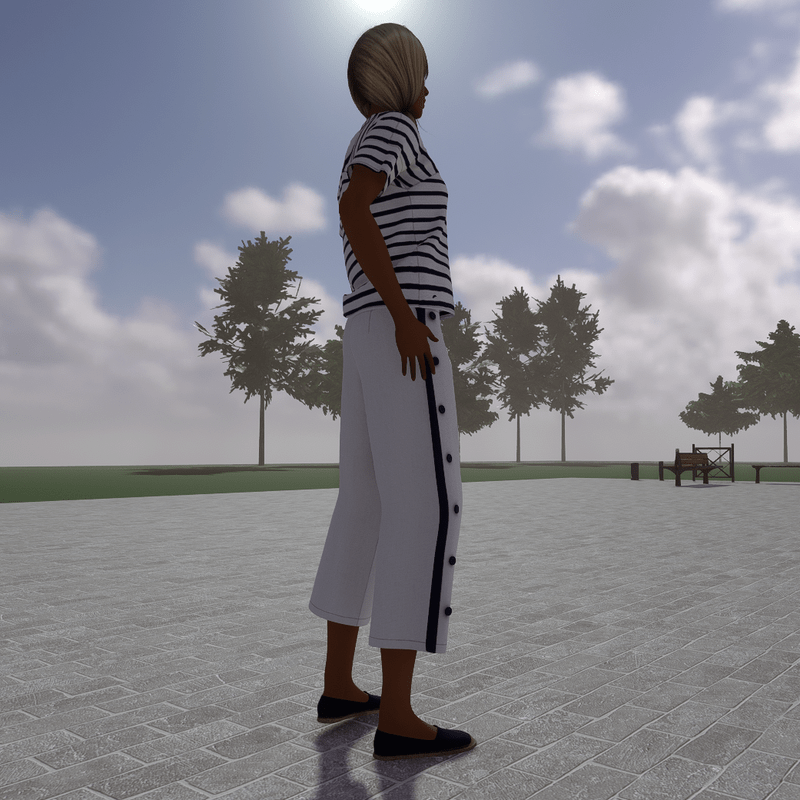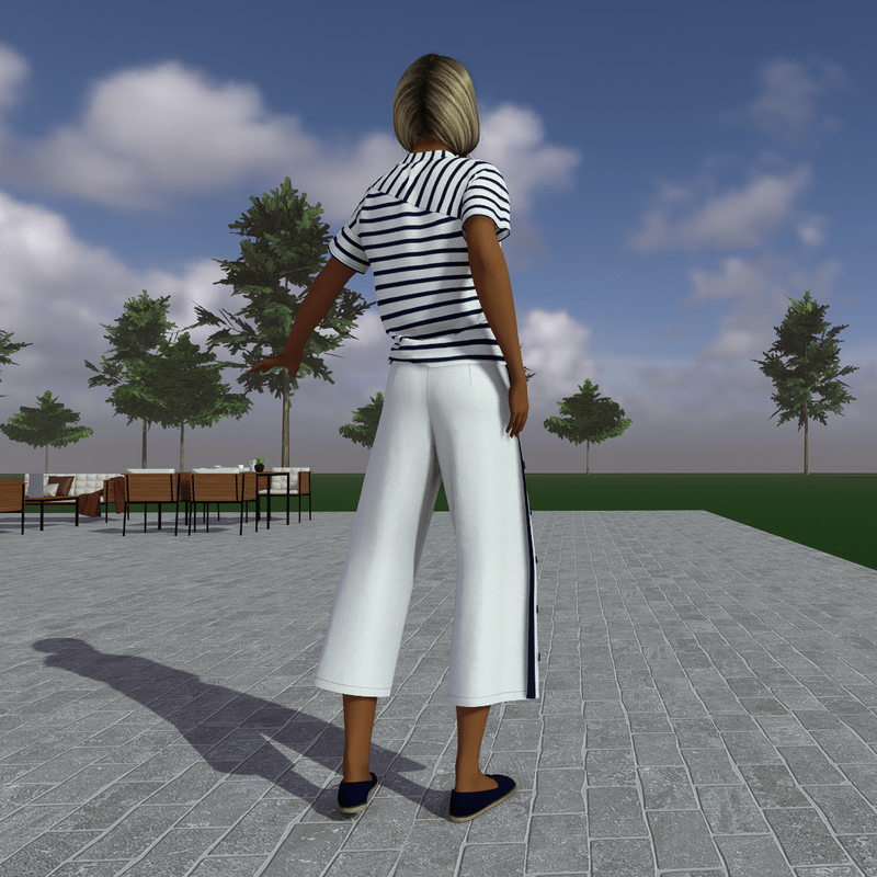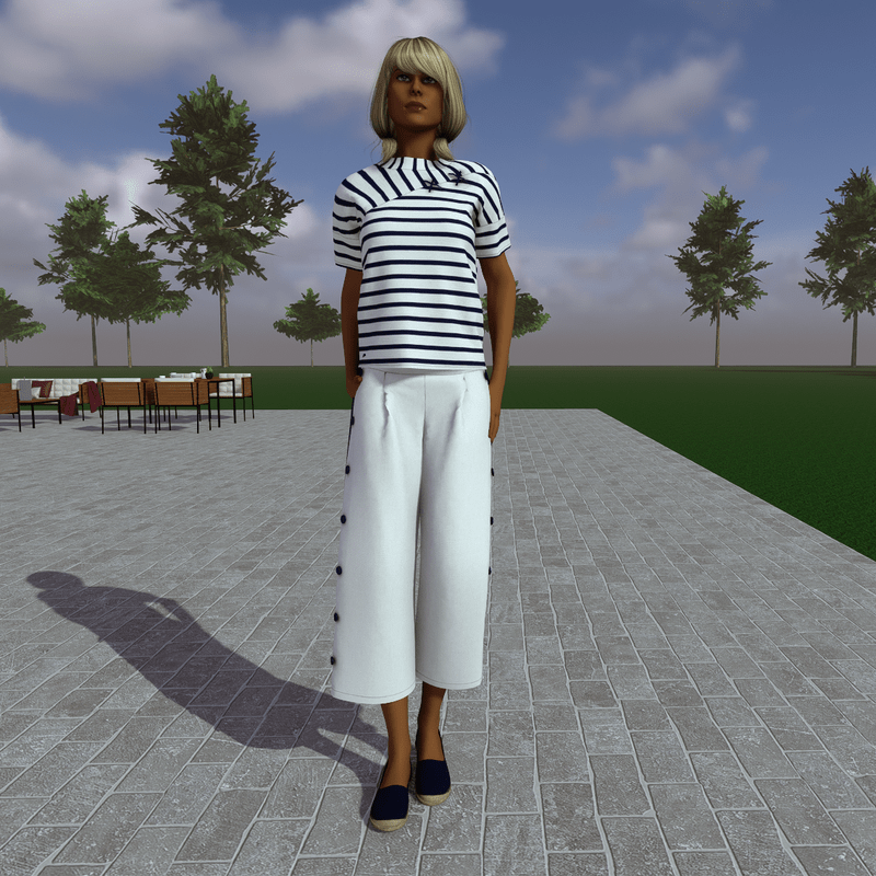 A beautiful, nautical summer set. In dark blue and white colour. The top has stripes and short sleeves and the wide leg pants has a blue stripe and buttons to both sides.