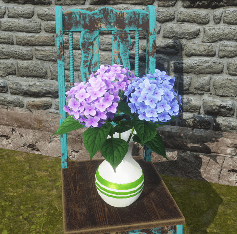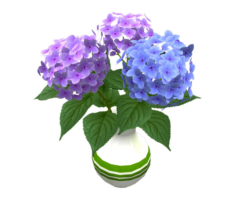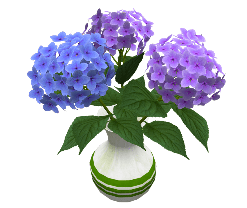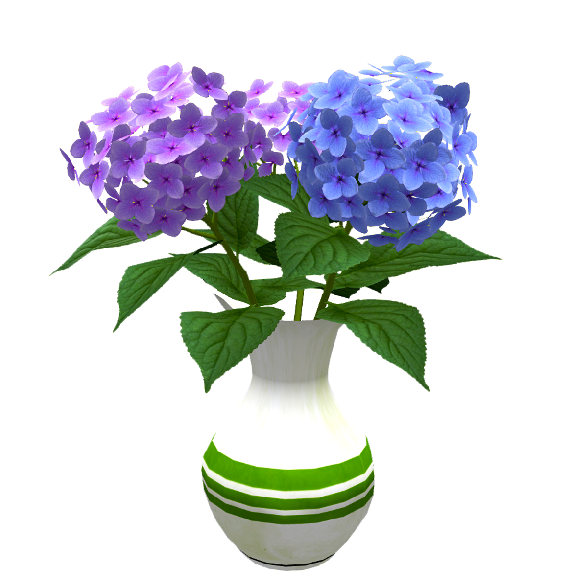 Hydrangea bunch in vase. 7880 triangles. See in Sansar experience - https://atlas.sansar.com/experiences/reidparkin/reid-s-plants