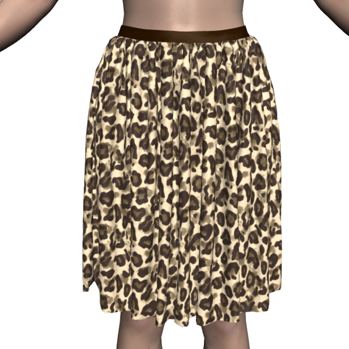 Dynamic knee-length skirt with leopard skin fabric texture. Created in Marvelous Designer.