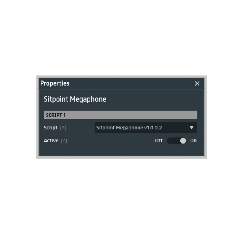 Enables the megaphone of a user when using a sitpoint. ______________________________________________________ ** Instructions ** Add this script to an object that has one or more sitpoints. ** Settings ** - Active: toggles the script on or off. ** Known Issues ** - Does not work on dispensed/rezzed objects. ** Questions, issues or suggestions? ** Contact @Tron-Sansar