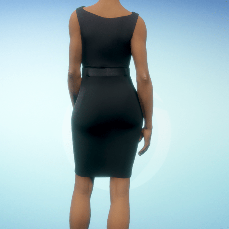 Boatneck executive dress with a black leather belt. By Sweet Distractions Note: You will have to tug the material in some places to get rid of 'poke-through'.