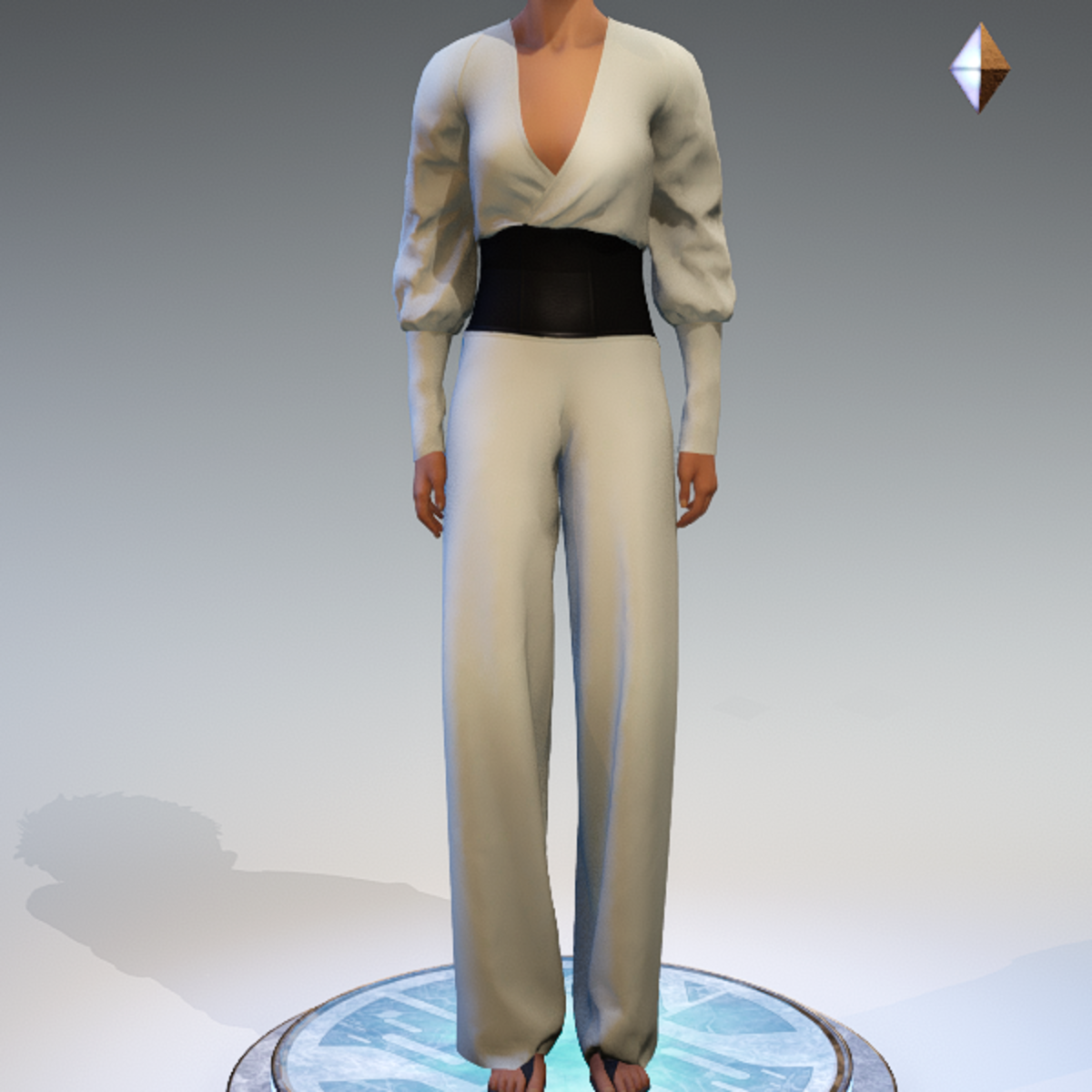 - Wrapped Pantsuit - Linen and Leather - Cream