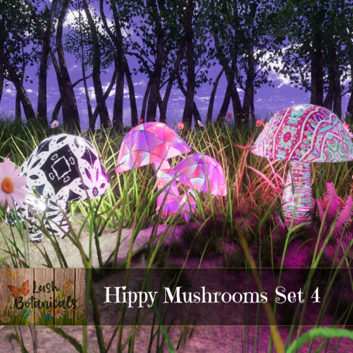 Set of 3 Mushrooms with scrolling textures and slightly emissive. ~with Lights ~Resizable Visit Lush Botanicals in Sansar https://atlas.sansar.com/experiences/nicci-2791/lush