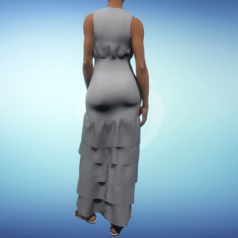 Elegant full-length gown featuring a bloused bust and ruffled skirt. By Sweet Distractions