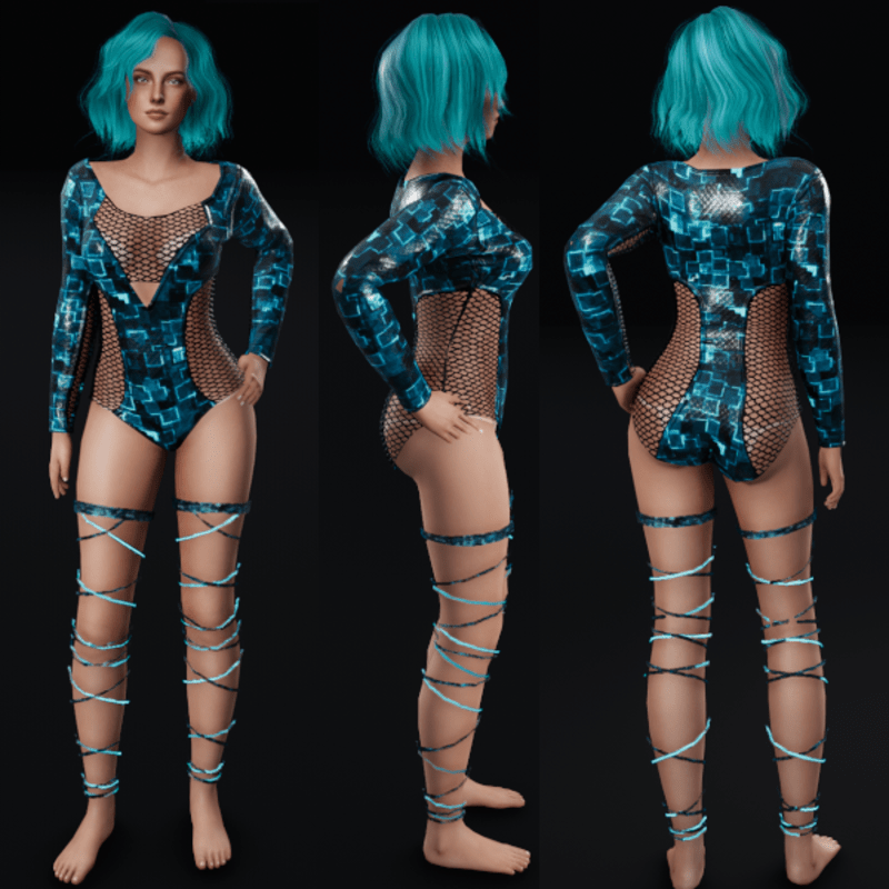 Cyber Cubes Bodysuit with netting, check my store for the matching emissive animated leg wraps Get Demo Here: https://store.sansar.com/listings/2f96b748-99ca-41a6-b98d-df4737bf7d02/cyber-cubes-bodysuit---demo Trying on the available Demo is the best way to assure your satisfaction with quality and fit. The lighting isn't the best in the lookbook and the shoulders seem to fit funny in the lookbook as well, so I recommend wearing the demo in world to see how it truly looks on you. Visit my inworld store experience to find discounted items that or not available on the marketplace and also look for miniature butterflies to find free mystery gifts! https://atlas.sansar.com/experiences/lonaleelancaster/lona Made in Marvelous Designer and can be adjusted to fit most avatars. Please try a demo to assure fit and satisfaction. To learn more about transforming and adjusting Marvelous Designer clothing visit this link: https://help.sansar.com/hc/en-us/articles/115005693363-Fitting-Marvelous-Designer-clothing-to-your-avatar#some-tips