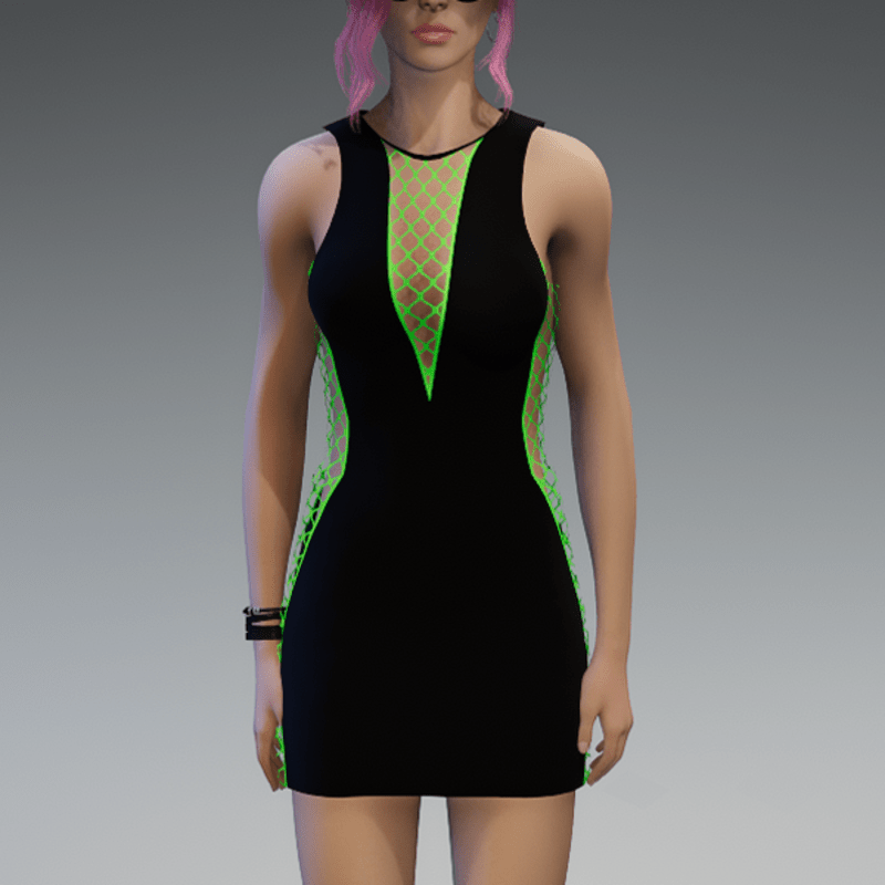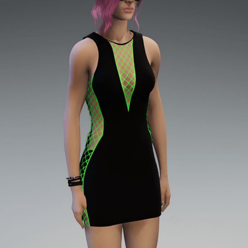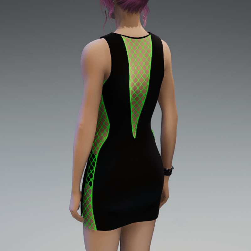 my party dress with green fishnet-applications on the side, on the front and on the back. If you want to know how this dress will look like on your avatar before buying this one - feel free to try my 'siggys store' version for free first! Enjoy!