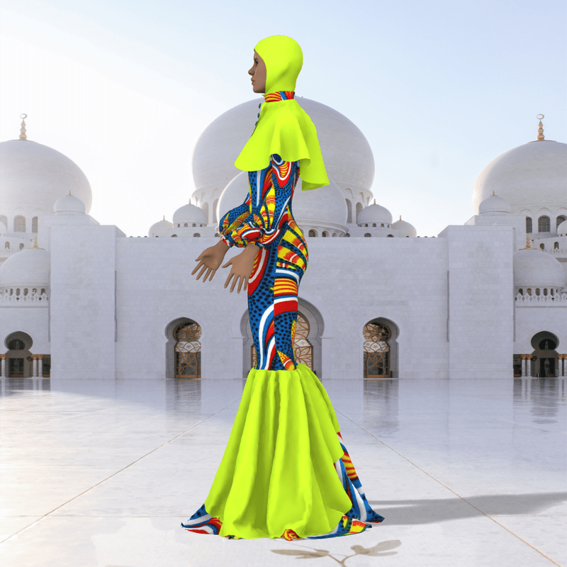 Do you want to celebrate EID on Sansar Here is a Female cloth for EID with African fabric, and a hijab. It is a long flowing gown with nice aesthetics, the cloth may appear with darker shades when stimulated. Made on the default avatar Stimulate and Enjoy EID MUBARAK