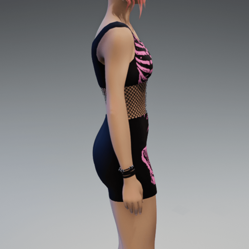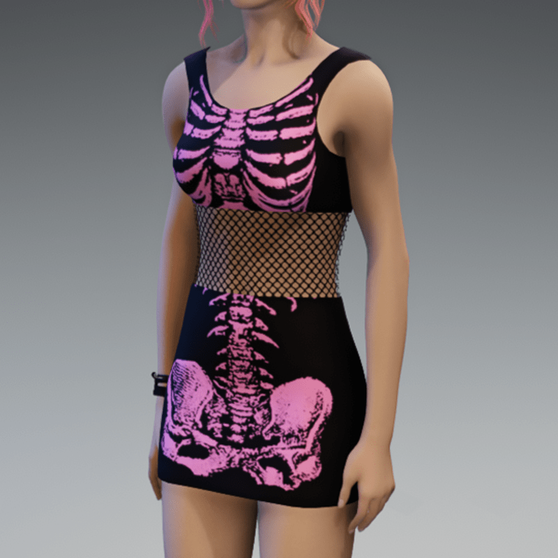 Ready for some Halloween-vibes? This one comes with a fishnet-detail in the middle of the dress and a cute pink skeleton-fabric. Of course you can always wear those dresses! (and don't forget to click the "adjust item"-button) Enjoy!