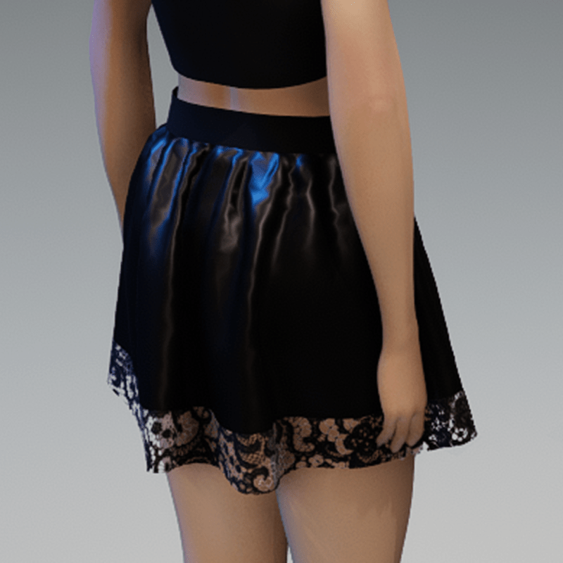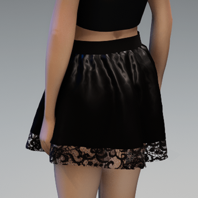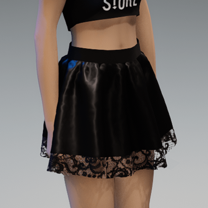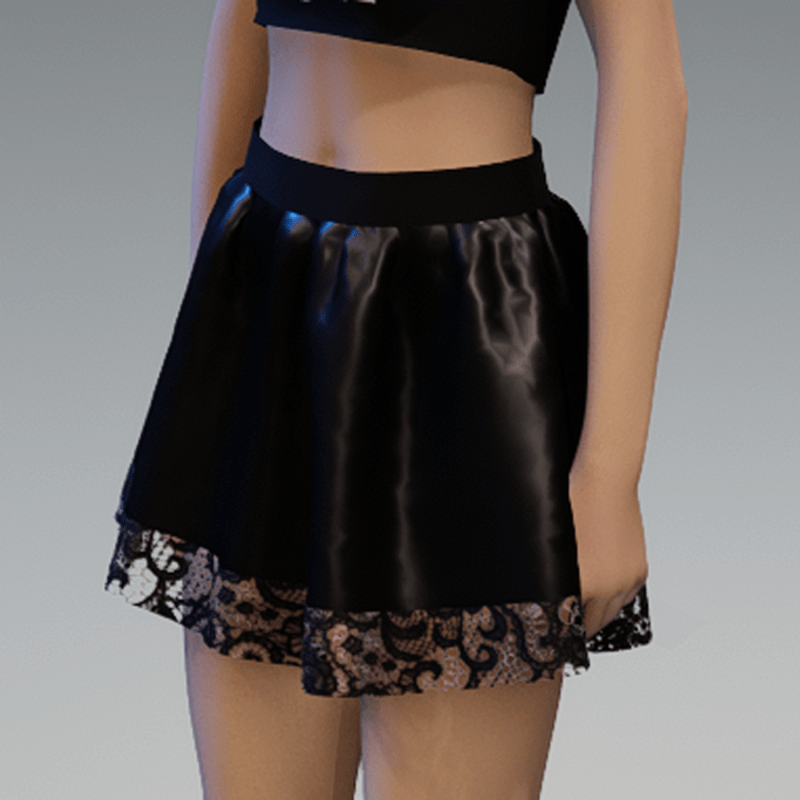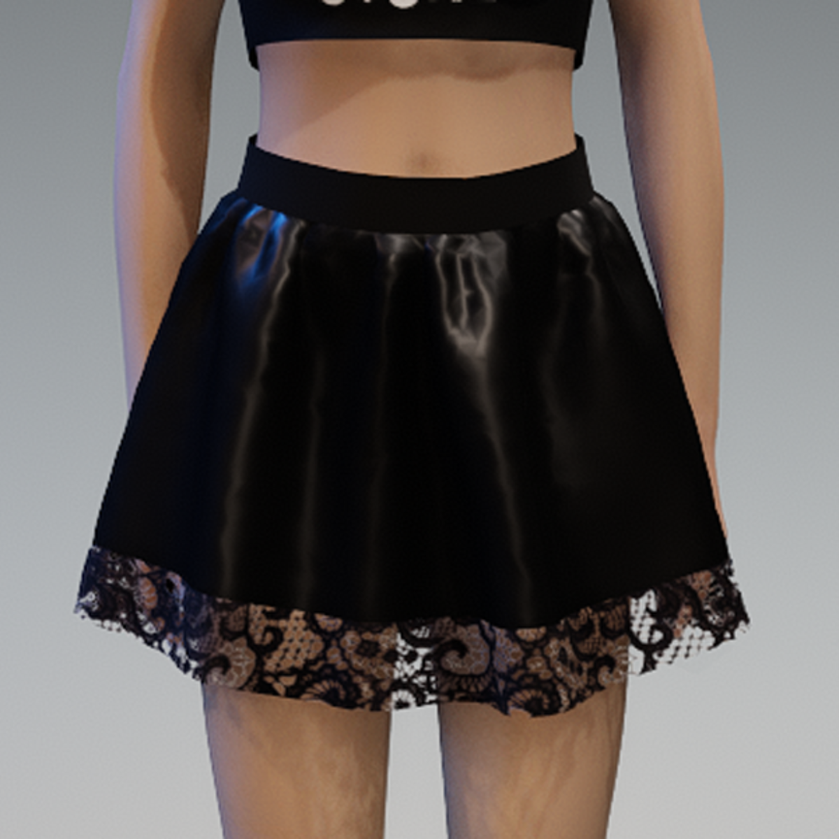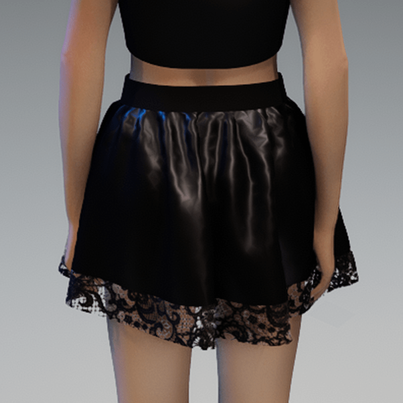 My black mini "flutter" skirt with a cute lace application on the bottom as a shiny one. Enjoy!