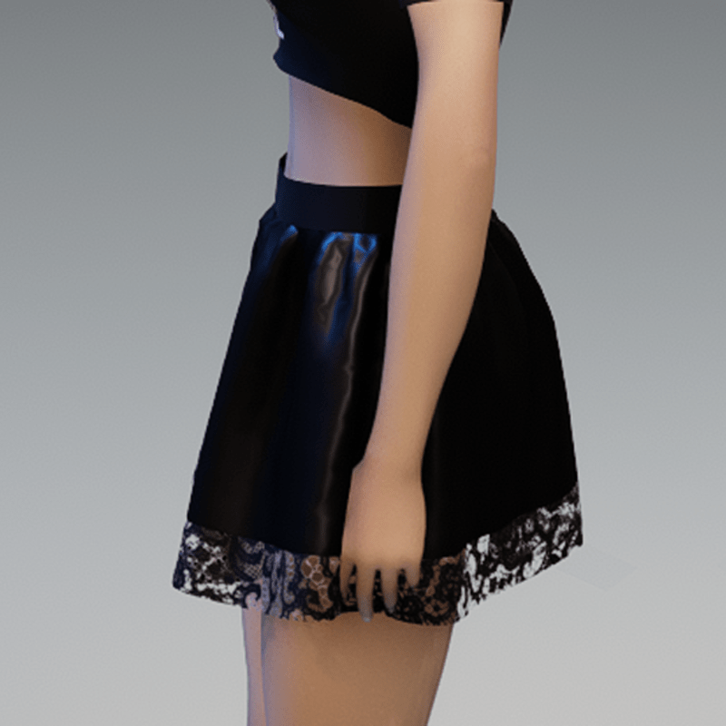 Black Shiny Mini "Flutter" Skirt with Lace Application