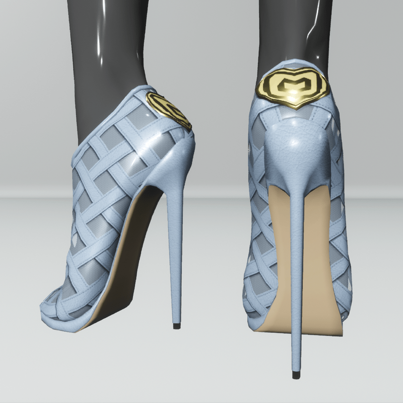 High heels stiletto shoes, with open toe, leather straps and translucent fabric in baby blue color for the h2ai high avatar. There is a golden decorative heart at the heel, with a visual effect. Get the free demo item before purchasing here:https://store.sansar.com/listings/db96d2d4-878a-46aa-914c-3ca664f5f14a/heart-shoes-for-h2ai-high----demo