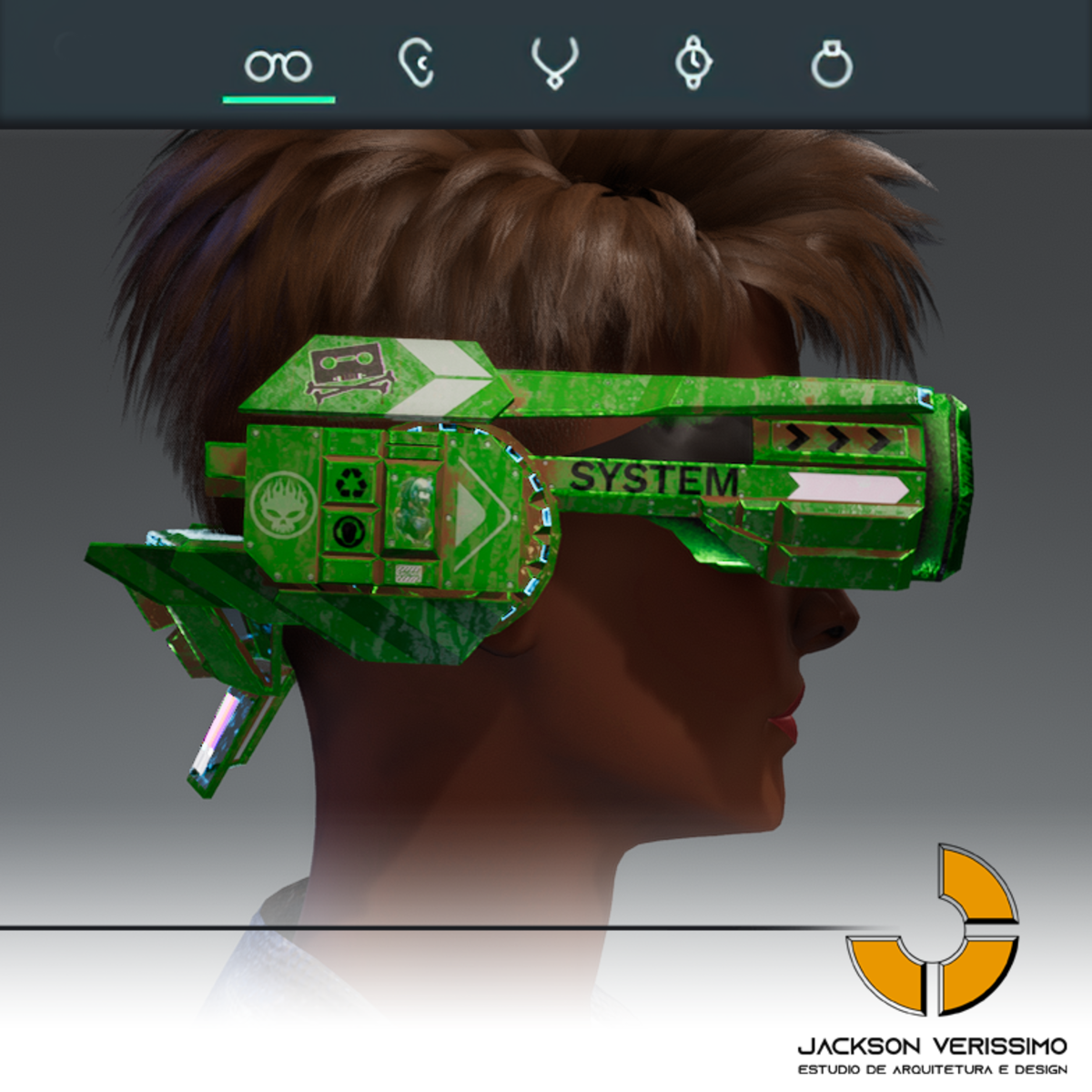 Visionary Design for a VR Headset exclusive for the Sansar Metaverse. Special and High Quality Texture. Vr glasses with headphones, Emissive lights and Media Screen. Unisex. Matches with all humanoid avatars. No need for adjustments for the default 2.0 Avatar of Sansar.