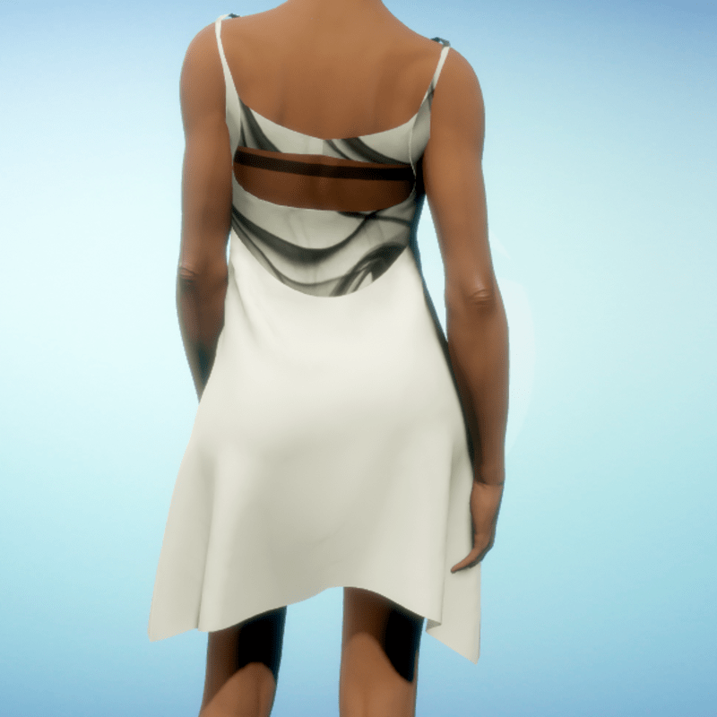 Mod-style dress featuring a swirl print on the bodice with a cut-out in back. By Sweet Distractions